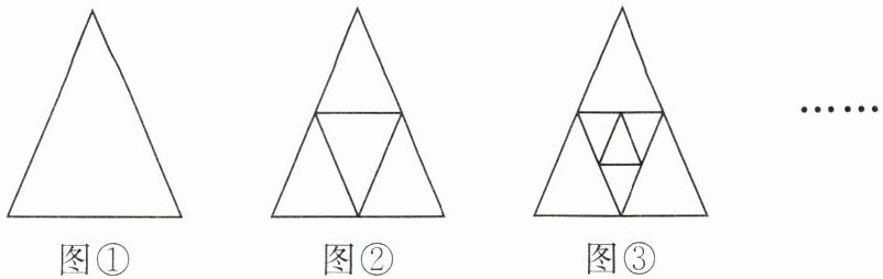 9. 如图,图①是一个三角形,分别连接这个三角形三边的中点得到图②,再分别连接图②中的中间小三角形三边的中点,得到图③.按此方法继续下去,请你根据每个图中三角形的个数的规律,解答下列问题.