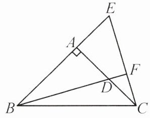 例 如图,∠BAC = 90°,AB = AC,点 D 在 AC 上,点 E 在 BA 的延长线上,BD = CE,BD 的延长线交 CE 于点 F.求证 BF ⊥ CE.