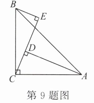 9. 如图,∠ACB = 90°,AC = BC,BE ⊥ CE,垂足为 E,AD ⊥ CE,垂足为 D.下列四个结论:①∠ABE = ∠BAD;②△CEB ≌ △ADC;③AB = CE;④AD - BE = DE.其中正确的是