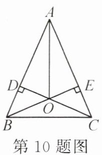 10. 如图,BE 和 CD 是△ABC 的高,它们相交于点 O,且 BE = CD,则图中有