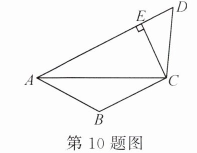 10. 如图,$AC$平分$\angle BAD$,$CE\perp AD$,垂足为$E$,$BC = CD$。有下列结论:①$S_{\triangle ACD}:S_{\triangle ACB} = AD:AB$;②$\angle ABC + \angle ADC = 180^{\circ}$;③$AB + AD = 2AE$;④$AD - AB = 2DE$。其中正确结论的个数是(