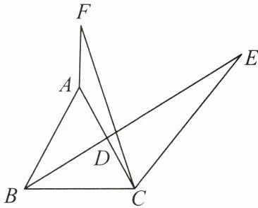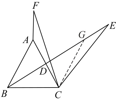 $\therefore \triangle ABD\cong \triangle CGD(SAS)$.$\therefore CG = AB = AC$,$\angle DCG = \angle BAD = \alpha = \angle ECF$.