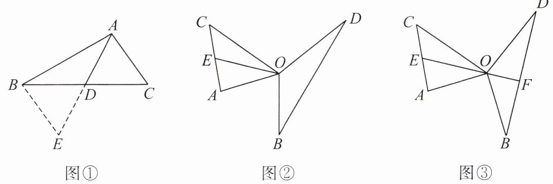 ②连接$BE$,通过三角形全等把$AB$,$AC$,$2AD$转化到$\triangle ABE$中;