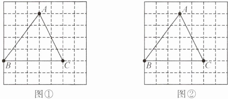 (1)在图①中,在直线$BC$的上方取一个不同于点$A$的格点$M$,使$\angle BMC=\angle BAC$.