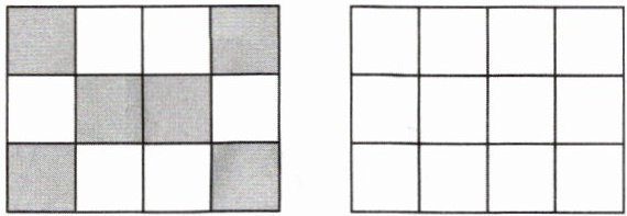 8. 如图,网格上是由个数相同的白色方块与灰色方块组成的一幅图案。请仿照此图案,在旁边的网格中设计出一个轴对称图案(不得与原图案相同,灰、白方块的个数要相同)。