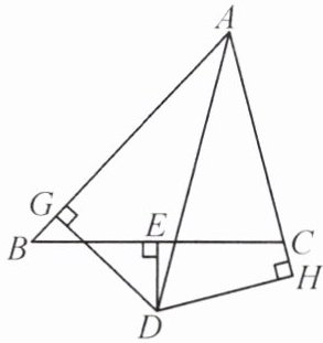 13. 如图,在$\triangle ABC$中,$\angle BAC$的平分线$AD$与$BC$边的垂直平分线$DE$交于点$D$,$DG \perp AB$,$DH \perp AC$,$G$,$H$为垂足。