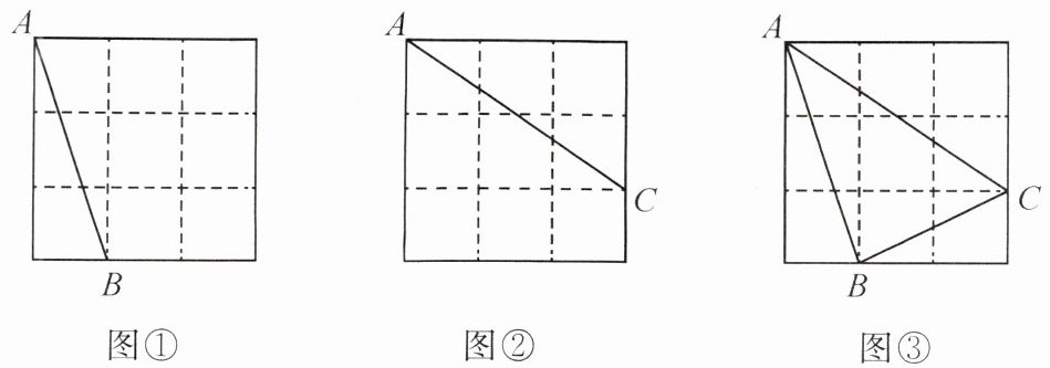 6. 图①、图②、图③都是 $ 3 × 3 $ 的正方形网格, 每个小正方形的顶点称为格点. $ A $,$ B $,$ C $ 均为格点. 在给定的网格中, 按下列要求作图.