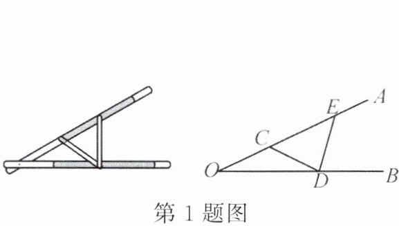 1. 公元前 $4$ 世纪,古希腊数学家提出了“三等分角”的几何问题. 借助如图所示的“三等分角仪”能三等分任一角. 这个三等分角仪由两根有槽的棒 $OA$,$OB$ 组成,两根棒在点 $O$ 处相连并可绕点 $O$ 转动,点 $C$ 固定,$OC = CD = DE$,点 $D$,$E$ 可在槽中滑动,若 $\angle BDE = 75^{\circ}$,则 $\angle CDE$ 的度数是(