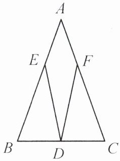 7. 如图,在 $\triangle ABC$ 中,$AB = AC$,$D$ 是 $BC$ 的中点,$E$,$F$ 分别是 $AB$,$AC$ 上的点,且 $AE = AF$. 求证 $DE = DF$.