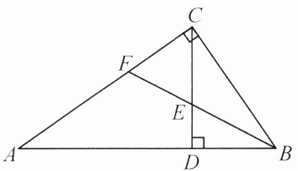 例 1 如图,在$ \triangle ABC $中,$\angle ACB = 90^{\circ},$$CD \perp AB,$垂足为 D,BF 平分$ \angle ABC $交 CD 于点 E,交 AC 于点 F. 求证 CE = CF.