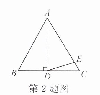 2. 如图,$\triangle ABC$ 是等边三角形,$AD \perp BC$,点 $E$ 在 $AC$ 上,且 $AE = AD$,则 $\angle DEC$ 的大小为(