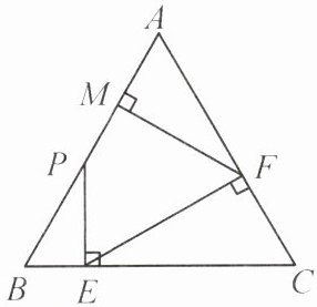10. 如图,$P$ 是等边三角形 $ABC$ 的边 $AB$ 上任意一点,$AB = 2$,$PE \perp BC$,垂足为 $E$,$EF \perp AC$,垂足为 $F$,$FM \perp AB$,垂足为 $M$,设 $BP = x(x > 0)$.