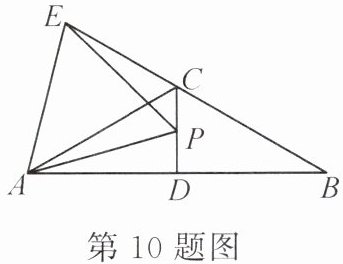 10. 如图,在$△ABC$中,$AC = BC$,$∠B = 30^{\circ}$,$D$为$AB$的中点,$P$为$CD$上一点,$E$为$BC$延长线上一点,且$PA = PE$。有下列结论:①$∠PAD + ∠PEC = 30^{\circ}$;②$△PAE$为等边三角形;③$PD = \frac{CE - CP}{2}$;④$S_{四边形AECP} = S_{△ABC}$。其中正确的结论是(