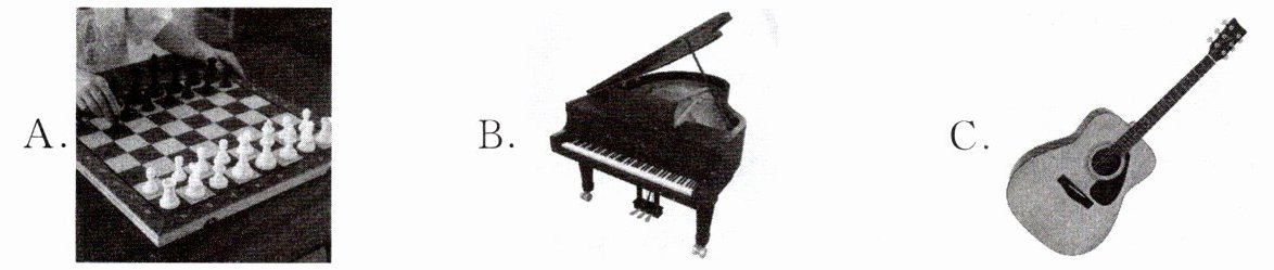 A. (国际象棋图) B. (钢琴图) C. (吉他图)