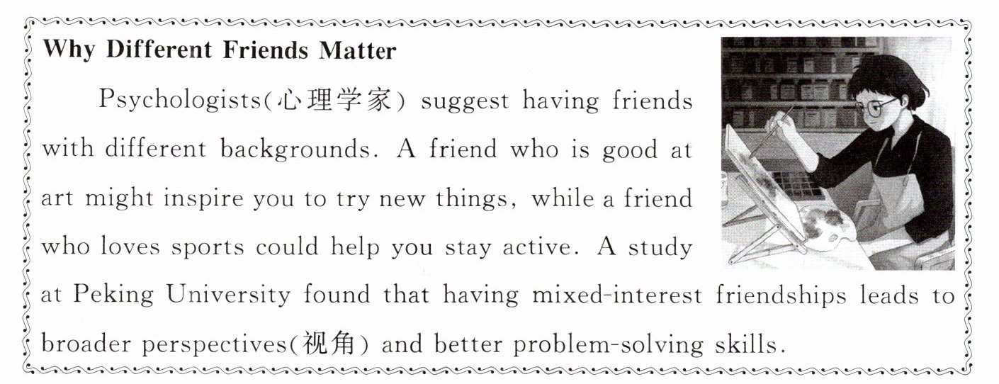 ★. During a school project, she needed to work with classmates. But she found it hard to communicate and cooperate with them because she was so used to the AI’s fixed responses. The AI always agreed with her and never had different opinions. In contrast, real friends can have arguments, but then they make up, and their friendship becomes stronger.
