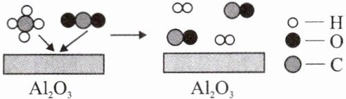 6. 甲烷($CH_4$)和二氧化碳在$Al_2O_3$的催化下可以制取气态化工原料,下图是其原理的微观示意图,关于该反应的说法错误的是(