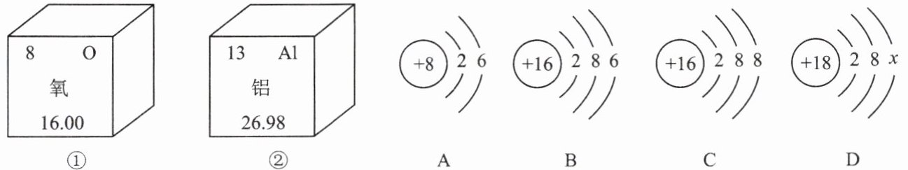 10.(4分)元素周期表是学习和研究化学的重要工具。下图中①②分别为氧元素、铝元素在元素周期表中的信息示意图,A、B、C、D是四种粒子的结构示意图。试分析下图并回答问题: