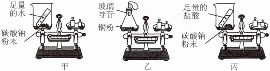 甲实验中没有发生化学反应(或丙实验装置未密封,生成的气体会逸散到空气中,导致天平失去平衡)