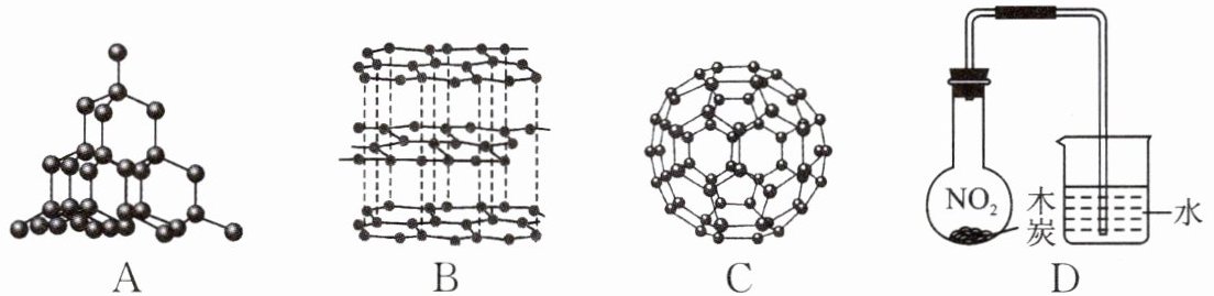 (填序号)。(4)图D中向盛有红棕色 $ NO_{2} $气体的烧瓶中投入若干块木炭,连接好装置,稍待片刻,能看到红棕色变浅的原因是木炭具有