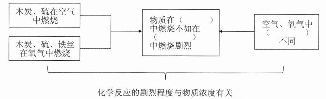 )中燃烧剧烈 → 空气、氧气中(氧气含量