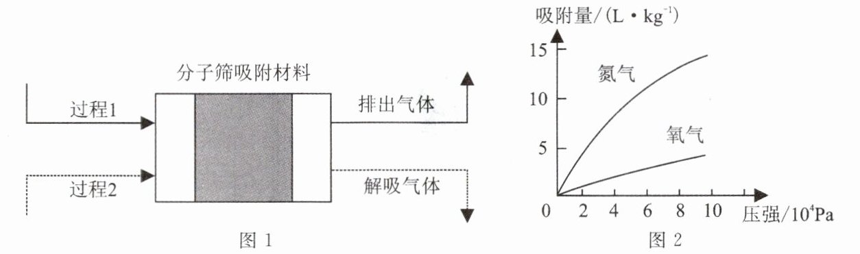 (2)变压吸附法:利用变压吸附技术,以分子筛为吸附剂制取氧气。由图1、图2可知:过程1中,空气通过分子筛吸附材料时,