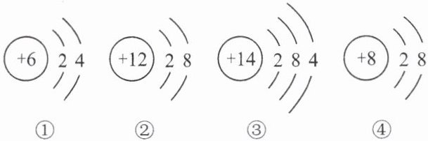 )。①$\begin{array}{r} (+6)\\ 2\ 4\end{array} $ ②$\begin{array}{r} (+12)\\ 2\ 8\end{array} $ ③$\begin{array}{r} (+14)\\ 2\ 8\ 4\end{array} $ ④$\begin{array}{r} (+8)\\ 2\ 8\end{array} $
