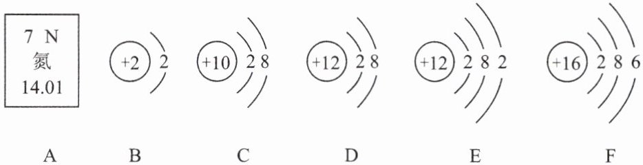 。(2)B~F是五种粒子的结构示意图,F形成的离子的符号是