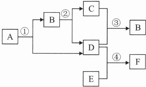 5. A、B、C、D、E、F是初中化学常见的物质,已知A、B通常状况下都是液体,C、D、E都是由同种元素组成的纯净物;其中A、B的组成元素相同;通常状况下,E是银白色金属,F是一种黑色固体,反应条件已省略。