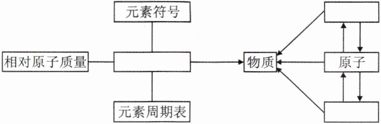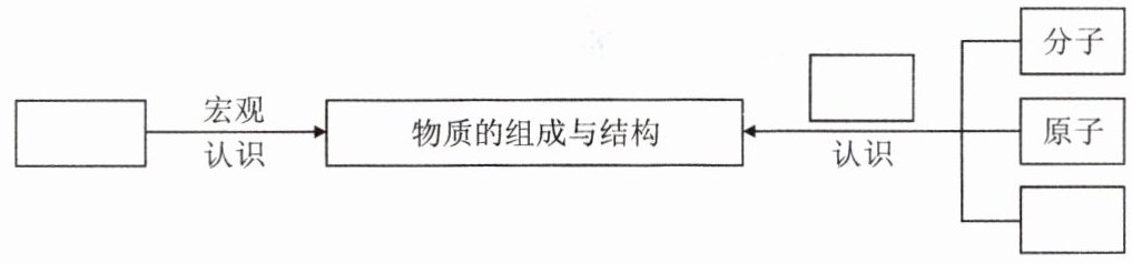 (流程图内容:[方框]→宏观认识→物质的组成与结构;[方框]→认识→物质的组成与结构;[方框]→分子、原子、[方框])