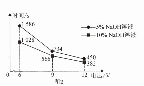 (3)电解纯水速率较慢,为探究不同电压和不同浓度NaOH溶液对电解水速率的影响,该同学进行多次实验,测得产生20 mL氢气所需时间如图2: