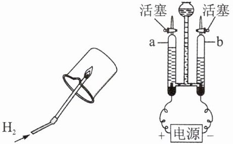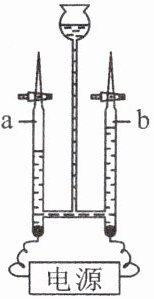 产生。在电解水实际操作中,a、b两管内收集到的气体的体积比通常小于$1:2$,其原因是在相同条件下,两种气体在水中的溶解量不同,则氢气