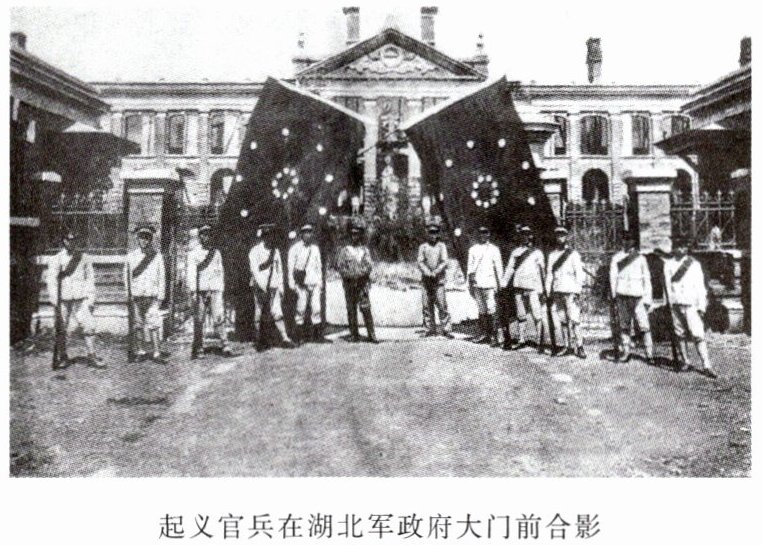 材料二 起义官兵在湖北军政府大门前合影