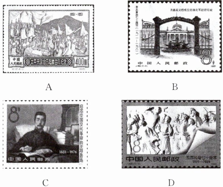 6. 小小的邮票承载着丰富的历史信息。下列四张纪念邮票所反映的历史事件中,标志着中国新民主主义革命开端的是( )。