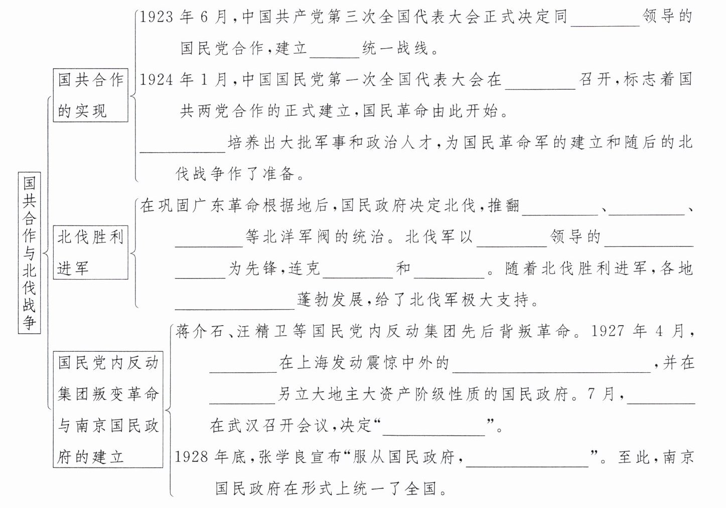 1923年6月,中国共产党第三次全国代表大会正式决定同____领导的国民党合作,建立____统一战线。