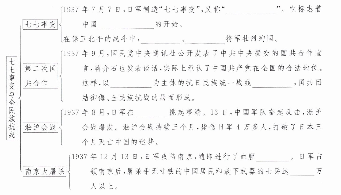 卢沟桥事变;全民族抗战;赵登禹;佟麟阁;国共合作;正式建立;上海;大屠杀;30
