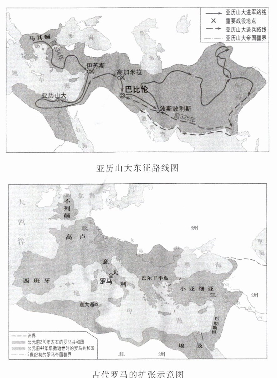 材料二 远征在客观上使希腊文明与埃及、巴比伦和印度的文明得以接触、交流、融汇,扩大了各民族已知世界的范围,加快了人类历史由分散走向整体的进程。在一个世界性的帝国内,世界性的政治、经济和文化的出现是必然的。亚历山大帝国的建立在世界史上具有划时代的意义。