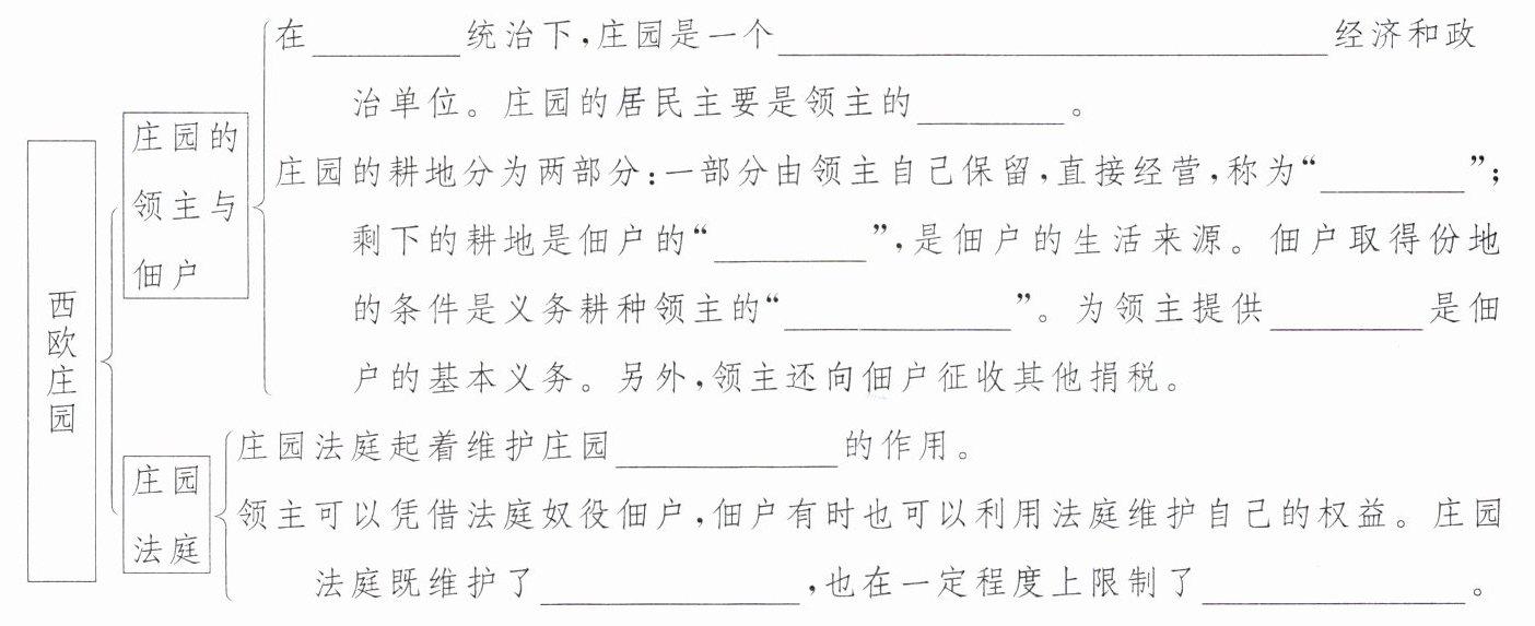 │ │ 庄园的耕地分为两部分:一部分由领主自己保留,直接经营,称为“______”;