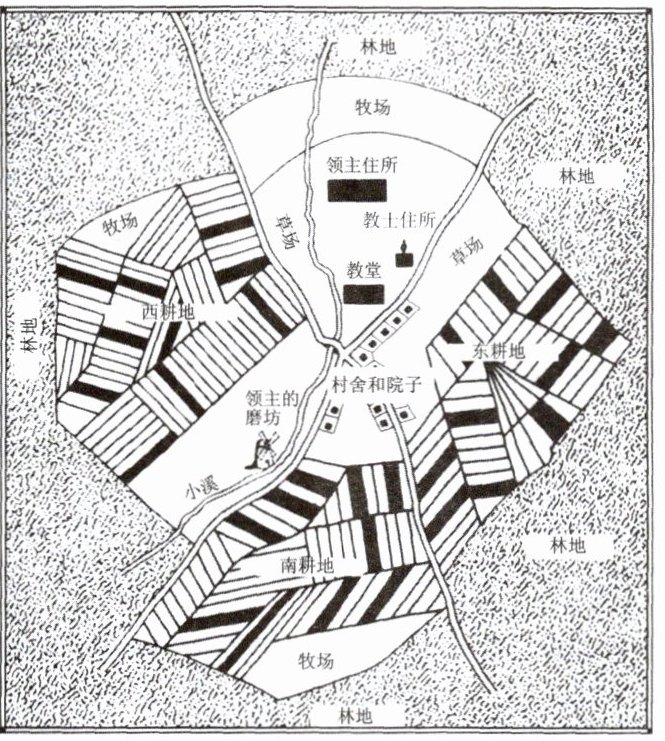 (1)领主住所、教堂和教士住所、村舍、磨坊、耕地、草场、牧场、林地等。