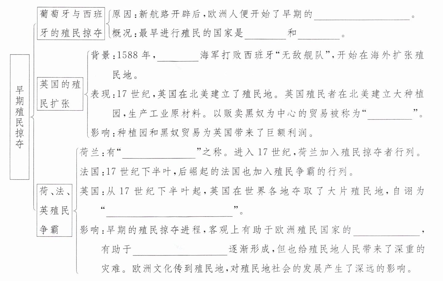 影响:早期的殖民掠夺进程,客观上有助于欧洲殖民国家的______,有助于______逐渐形成,但也给殖民地人民带来了深重的灾难。