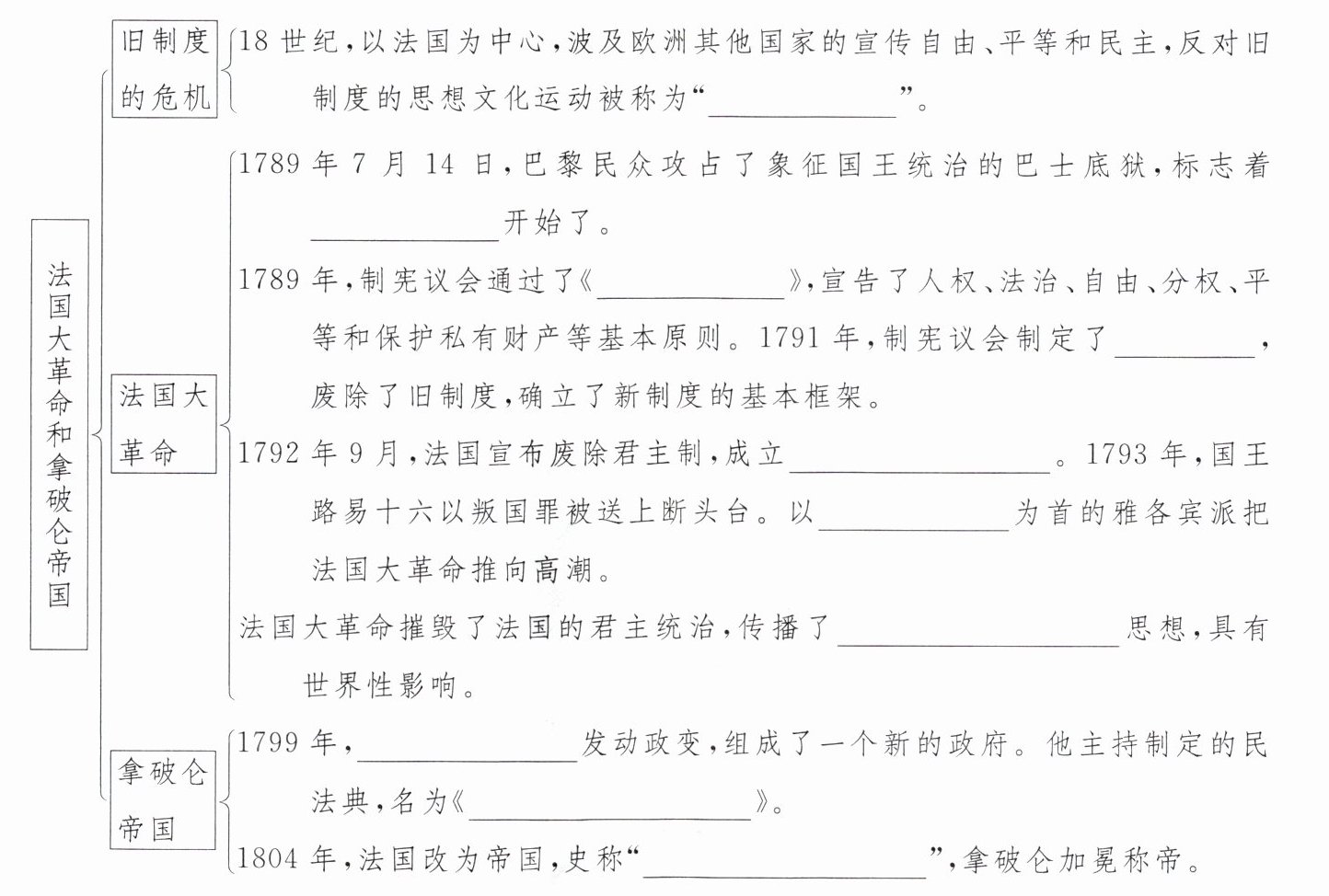 启蒙运动;法国大革命;人权宣言;宪法;法兰西第一共和国;罗伯斯庇尔;资产阶级自由民主;拿破仑·波拿巴;拿破仑法典;法兰西第一帝国