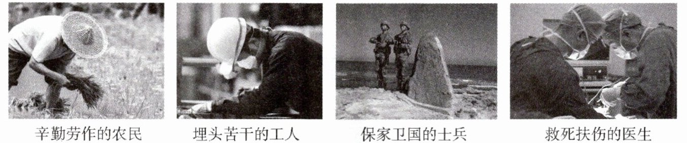 4.各行各业的劳动者都在挥洒汗水,用平凡的身影作出不平凡的贡献。下列照片共同体现了劳动者( )
