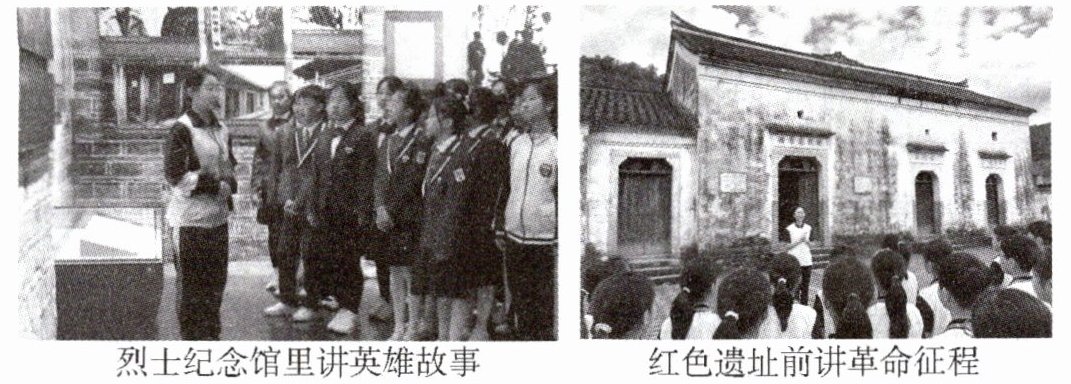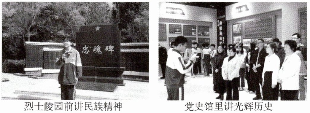 1.奉献社会能够使我们的视野不断拓展,知识不断丰富,能力不断提高,道德境界不断提升。奉献社会能够推动国家发展、社会进步,推动形成向上向善的强大力量,使我们的社会变得更加和谐美好。2.①有的同学把“新四军”说成了“解放军”,没有认真学习历史。建议:认真学习,不得马虎。②有的同学在讲解时声音太小,紧张时会失误。建议:增强自信,克服紧张心理,积极参加社会实践活动。
