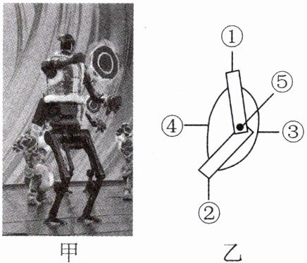 7. 如图甲所示,人形机器人因登上春晚而爆火。人形机器人穿花棉袄扭秧歌既有趣又充满创意,将传统文化与机器人技术融合得恰到好处,而做到这些的“秘密武器”就是AI驱动全身运动控制技术。机器人下肢部分结构模拟人体运动的情形如图乙所示。下表是某人下肢某部位在不同状态下的血流量数据表,请据图表回答下列问题。