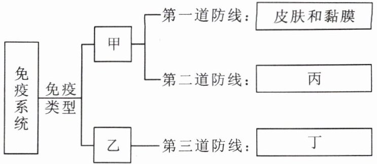 B.丙是指体液中的杀菌物质和吞噬细胞