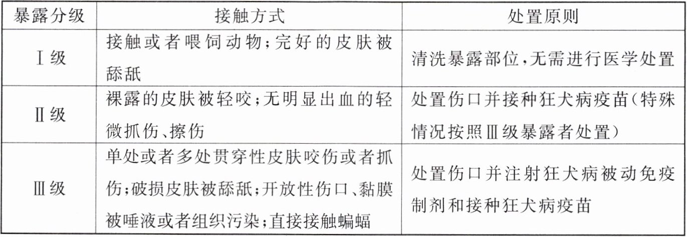 4. 狂犬病是由狂犬病病毒引起的急性传染病,主要由携带狂犬病病毒的犬、猫等动物咬伤或抓伤所致。狂犬病的暴露预防处置工作规范如下所示。