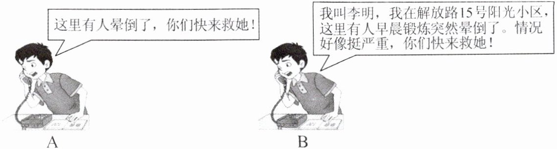 ”急救电话,求助急救中心,以挽救被救者的生命。下图中拨打急救电话的方式正确的是B