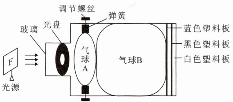 (3) 为演示近视的形成,可以调节螺丝,使气球 A 的前后径