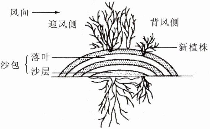 (2)随着柽柳的生长,落叶和沙层逐渐堆积,形成了如图所示的隆起沙包,起到了良好的