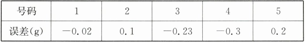 4. 测得某乒乓球厂生产的五个乒乓球的质量误差(g)如下表.检验时,通常把比标准质量大的克数记为正,比标准质量小的克数记为负.请你选出最接近标准的球,是
