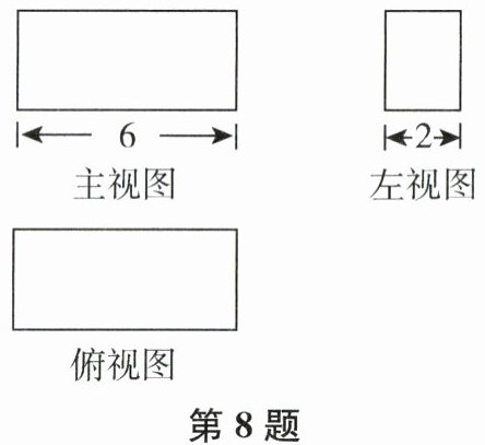 8. 如图所示是一个几何体的三视图,若这个几何体的体积是36,则它的表面积是